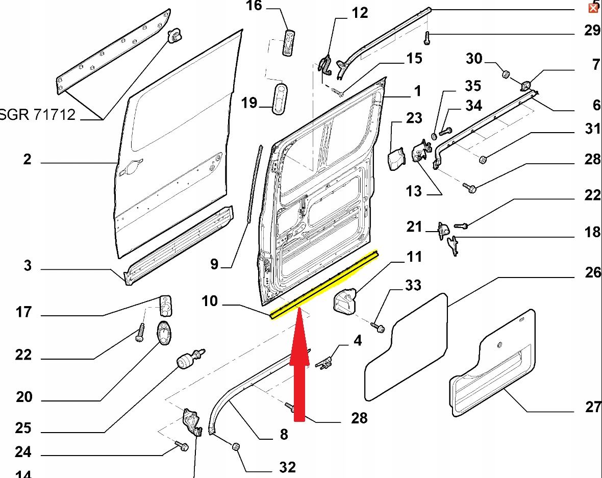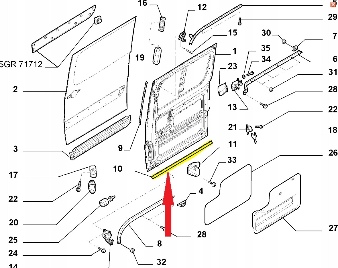 Uszczelka dolna drzwi bocznych przesuwnych